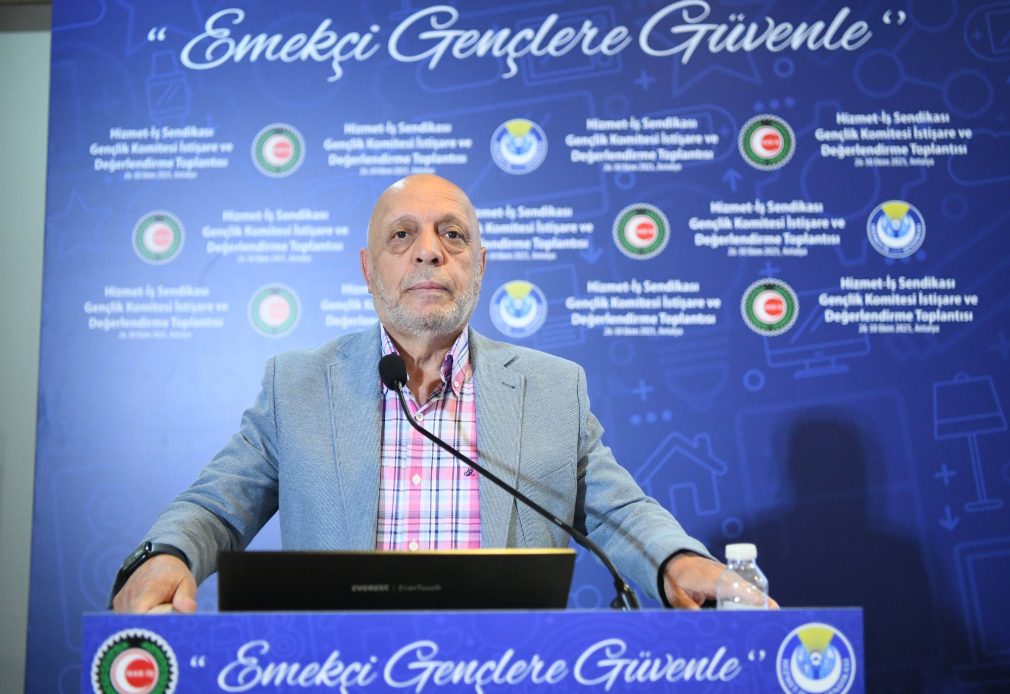 Arslan, Hizmet-iş sendikamızın gençlik komitesinin diğer birçok örgütlenme şekillerine göre önemli bir avantaja sahip olduğunu vurgulayarak, “Gençlik komitemizin avantajı var. İş yerine girmiş. Bin bir zorlukla işe girmiş, işçi olarak çalışıyor ve sendikamıza üye olmuş. Bu müthiş bir imkân. Sokaklarda gidip genç işçi aramıyorsunuz. Hazır var. Belediyeye girmiş, sendikamıza da üye olmuş. Bu gençleri bir araya getireceğiz" dedi.