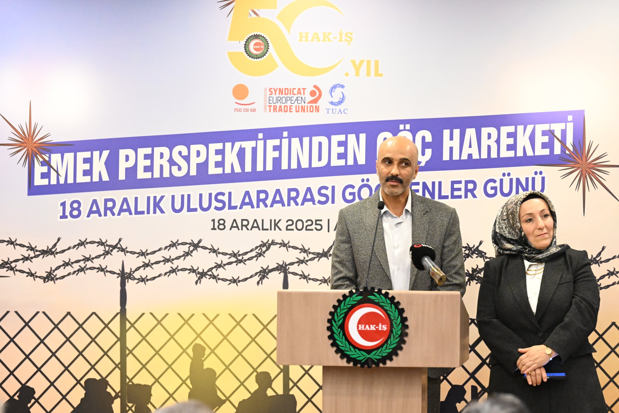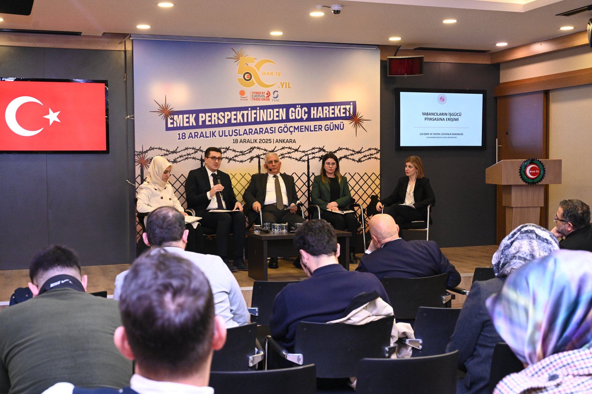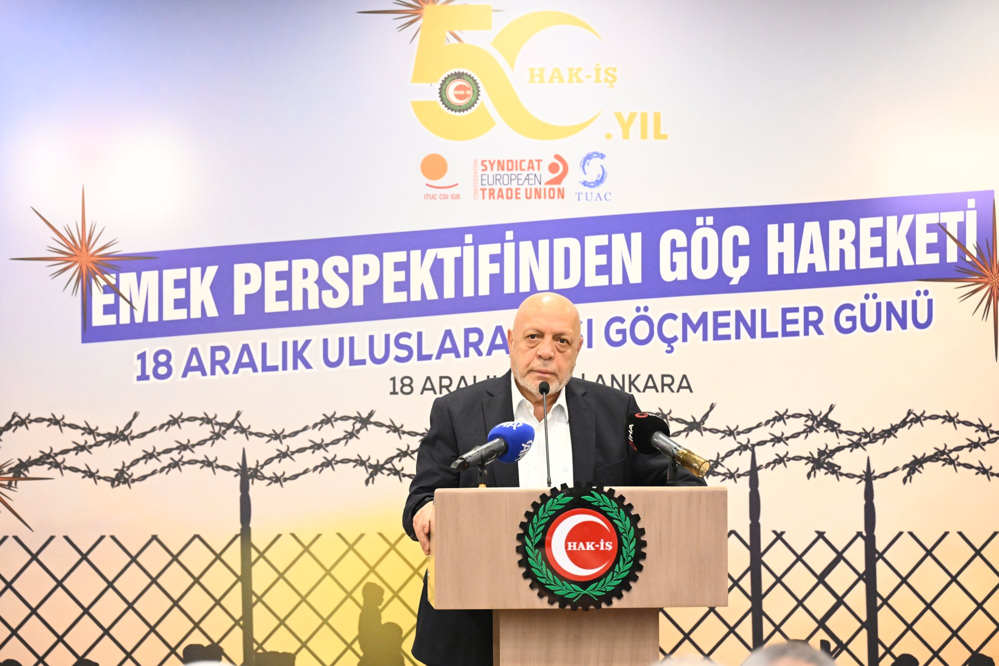 Genel Başkanımız Mahmut Arslan, 18 Aralık 2025 tarihinde Uluslararası Göçmenler Günü kapsamında “Emek Perspektifinden Göç Hareketi” temasıyla düzenlenen programa katıldı. Genel Başkanımız Mahmut Arslan, “HAK-İŞ yalnızca bir sendikal hareket değil, aynı zamanda bir insan hakları örgütüdür” dedi.