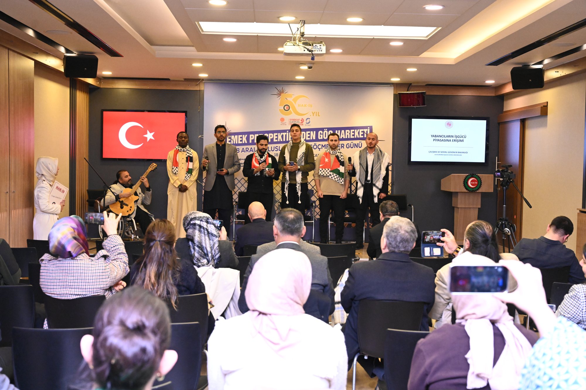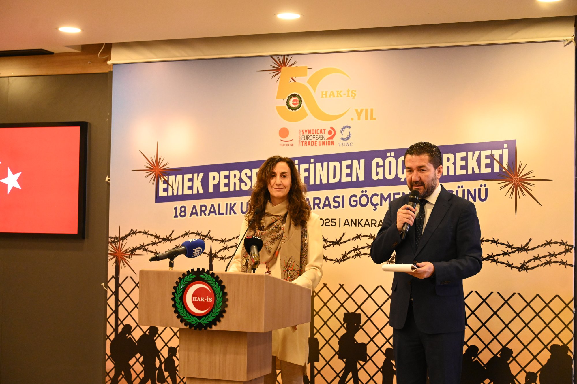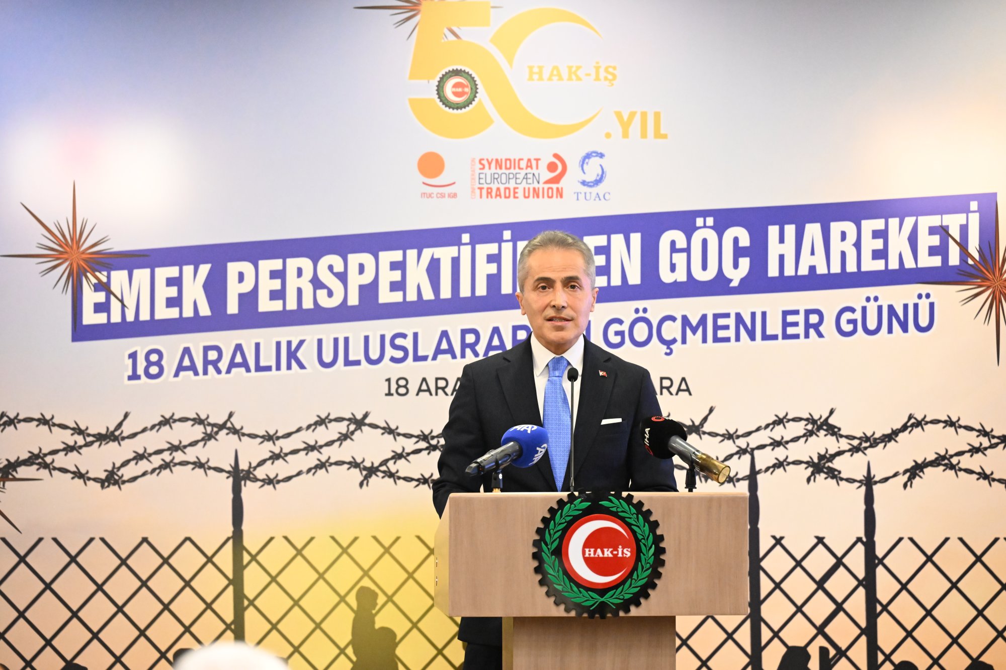 Genel Başkanımız Mahmut Arslan, 18 Aralık 2025 tarihinde Uluslararası Göçmenler Günü kapsamında “Emek Perspektifinden Göç Hareketi” temasıyla düzenlenen programa katıldı. Genel Başkanımız Mahmut Arslan, “HAK-İŞ yalnızca bir sendikal hareket değil, aynı zamanda bir insan hakları örgütüdür” dedi.