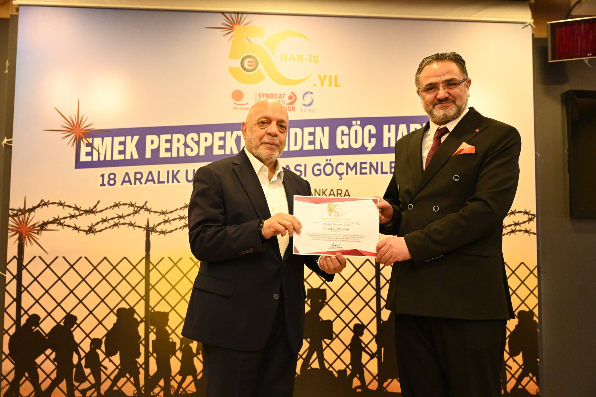 İçişleri Bakanlığı Göç İdaresi Başkanı Hüseyin Kök, 18 Aralık Uluslararası Göçmenler Günü münasebetiyle düzenlenen programda HAK-İŞ ailesiyle birlikte olmaktan büyük bir mutluluk duyduğunu belirtti.