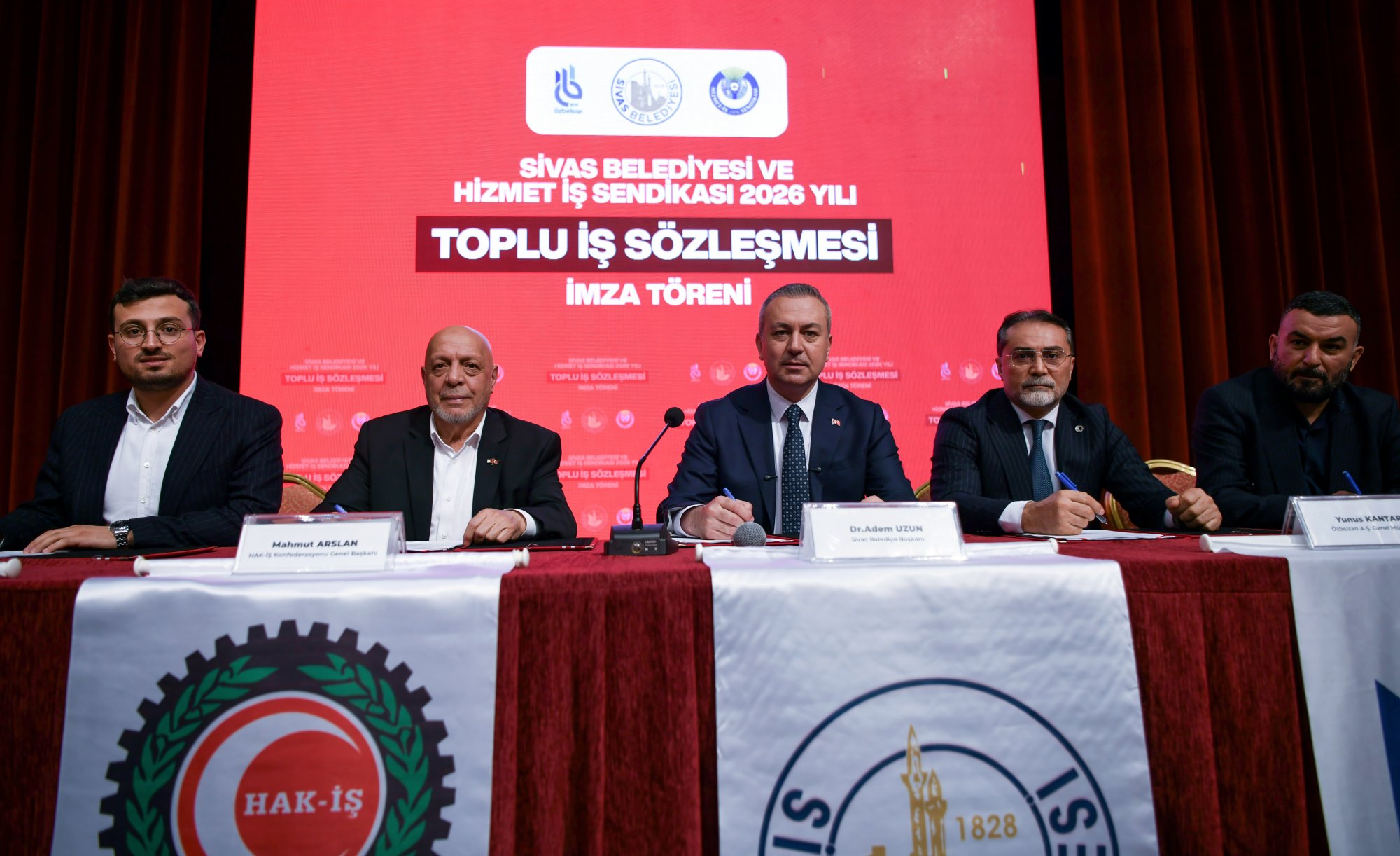 Genel Başkanımız Mahmut Arslan, 9 Şubat 2026 tarihinde Hizmet-İş Sendikamız ile Sivas Belediyesi iştiraki Özbelsan A.Ş. arasında imzalanan toplu iş sözleşmesi imza törenine katıldı.