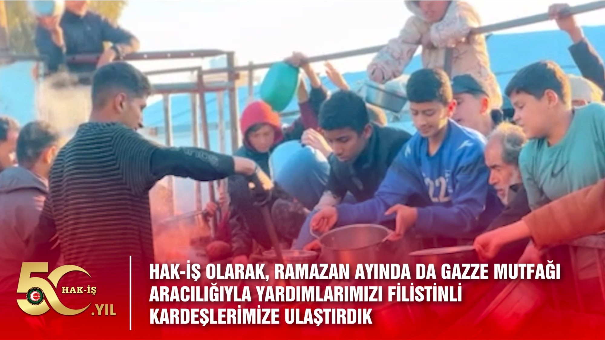 Siyonist İsrail’in saldırıları sonucu büyük bir insani felaketin yaşandığı Gazze’de, kardeşlerimizin temel ihtiyaçlarına katkı sunmak amacıyla Deniz Feneri Derneği aracılığıyla “Gazze Mutfağı” adıyla kurduğumuz aşeviyle ihtiyaç sahibi Filistinli kardeşlerimize sıcak yemek ulaştırıyoruz. Bu kapsamda günde 500 kişiye sıcak yemek ulaştırarak, 10 gün boyunca toplam 5.000 ihtiyaç sahibine yemek desteği sağlıyoruz. “Gazze Mutfağı” aracılığıyla her gün yüzlerce ihtiyaç sahibine ulaştırılan sıcak yemekler, kardeşlik ve dayanışma ruhunun somut bir göstergesi olarak Gazze’de umut olmaya devam etmektedir.