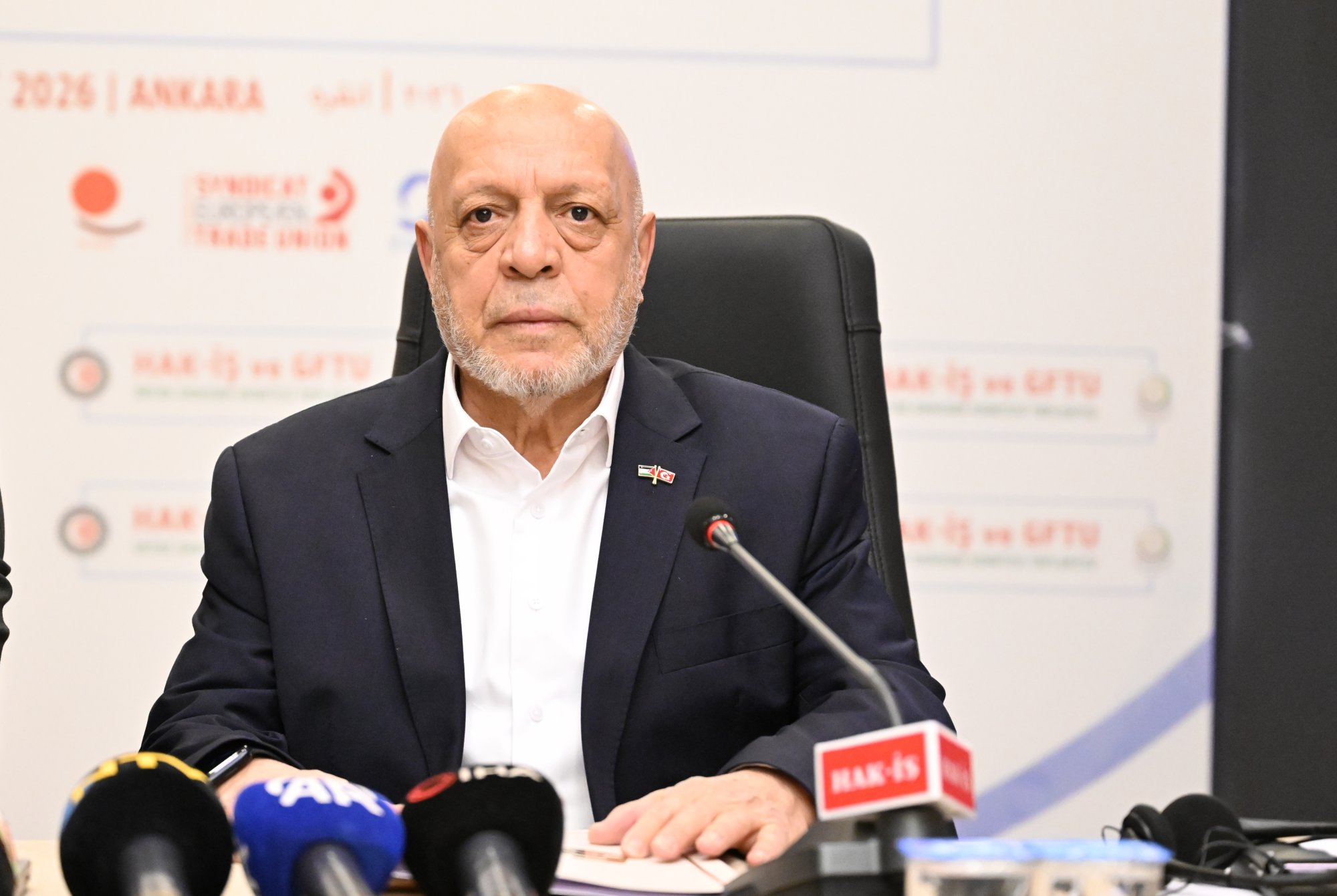 Arslan, HAK-İŞ’in uluslararası dayanışma faaliyetlerine değinerek, dünyanın farklı bölgelerinde yaşanan hak ihlallerine karşı da güçlü bir duruş sergilediğimizi ifade etti. Arslan, “HAK-İŞ bir konfederasyon olmanın ötesinde aynı zamanda bir insan hakları örgütüdür. Kuruluşumuzdan bu yana Filistin meselesi bizim temel gündemlerimizden biri olmuştur. Kudüs’e, Mescid-i Aksa’ya ve Filistin halkına yönelik saldırılara karşı her zaman sesimizi yükselttik, bundan sonra da yükseltmeye devam edeceğiz. Lübnan’daki kardeşlerimizle dayanışmamızı sürdürüyoruz. Irak’taki sendikal yapılarla ilişkilerimizi güçlendiriyoruz. İran’daki sendikalarla köklü ilişkilerimizi devam ettiriyoruz. Azerbaycan’ın işgal altındaki toprakları için verdiği mücadelede olduğu gibi, Çin'in Doğu Türkistan'a yaptığı baskılar ve işgallere karşı direndiğimiz gibi Suriyeli kardeşlerimizle de iş birliğimizi ve mücadelemizi birlikte sürdürmeye devam edeceğiz” dedi.