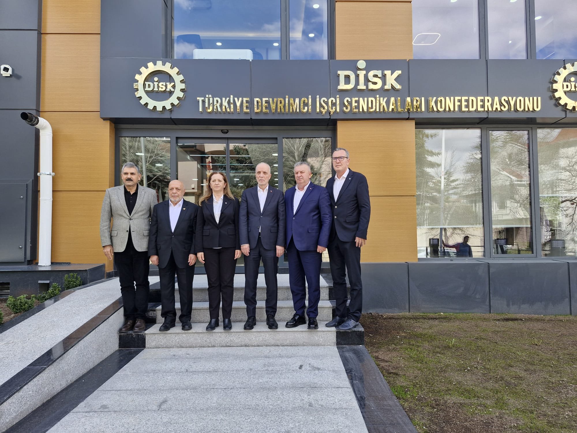 Genel Başkanımız Mahmut Arslan, TÜRK-İŞ Genel Başkanı Ergün Atalay ile birlikte 1 Nisan 2026 tarihinde Devrimci İşçi Sendikaları Konfederasyonu (DİSK) Genel Başkanı Arzu Çerkezoğlu’nu ziyaret ederek, DİSK’in Ankara’da hizmet vermeye başlayan yeni Genel Merkez binası için hayırlı olsun temennisinde bulundu.