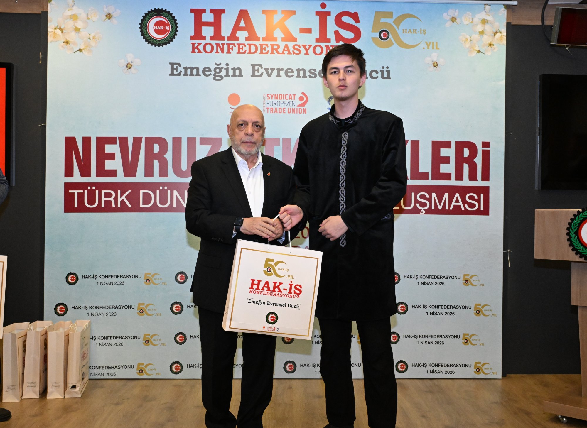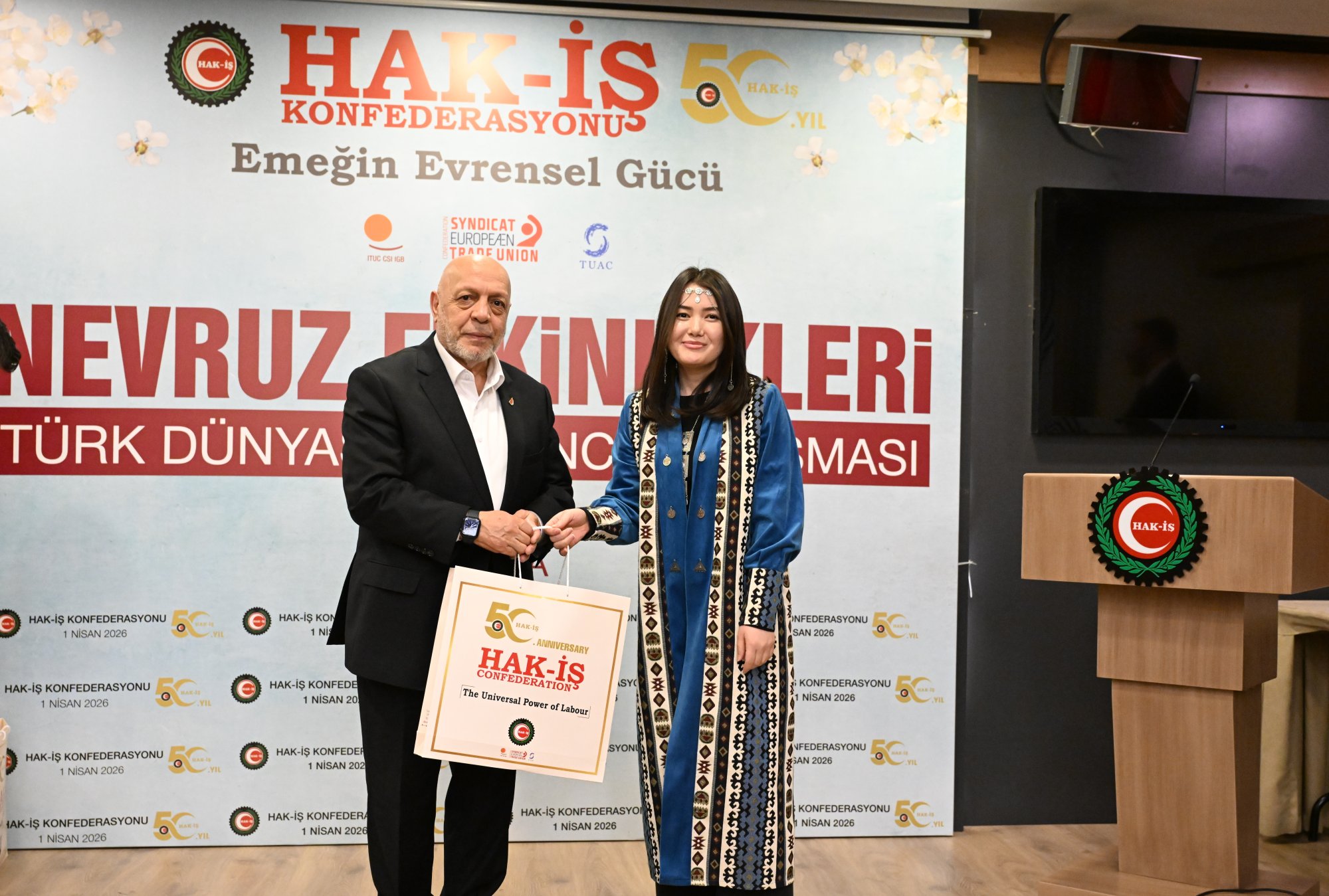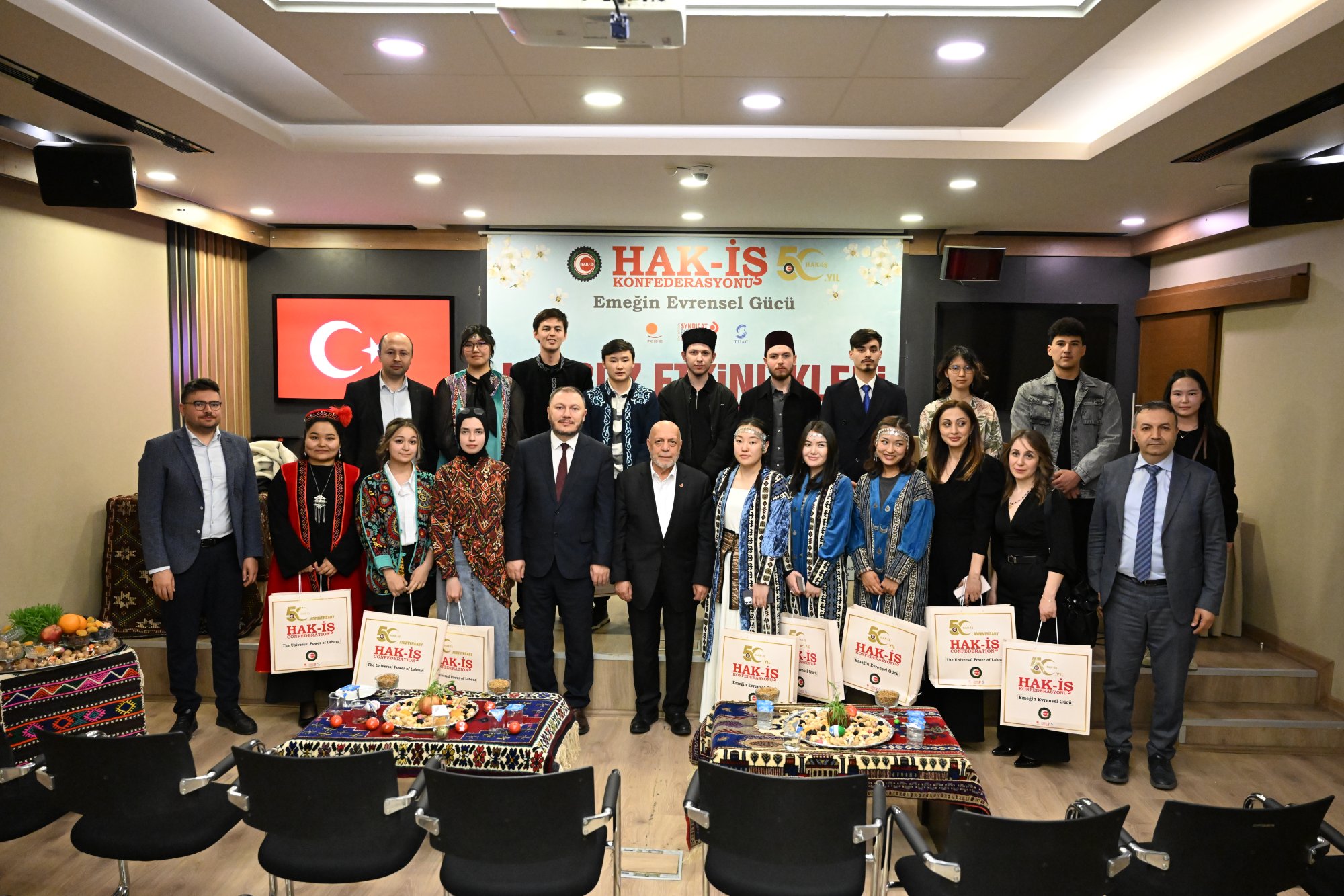 duruşu, İstiklal Marşının okunması ile başladı. HAK-İŞ 50. Yıl Filmi ve Nevruz