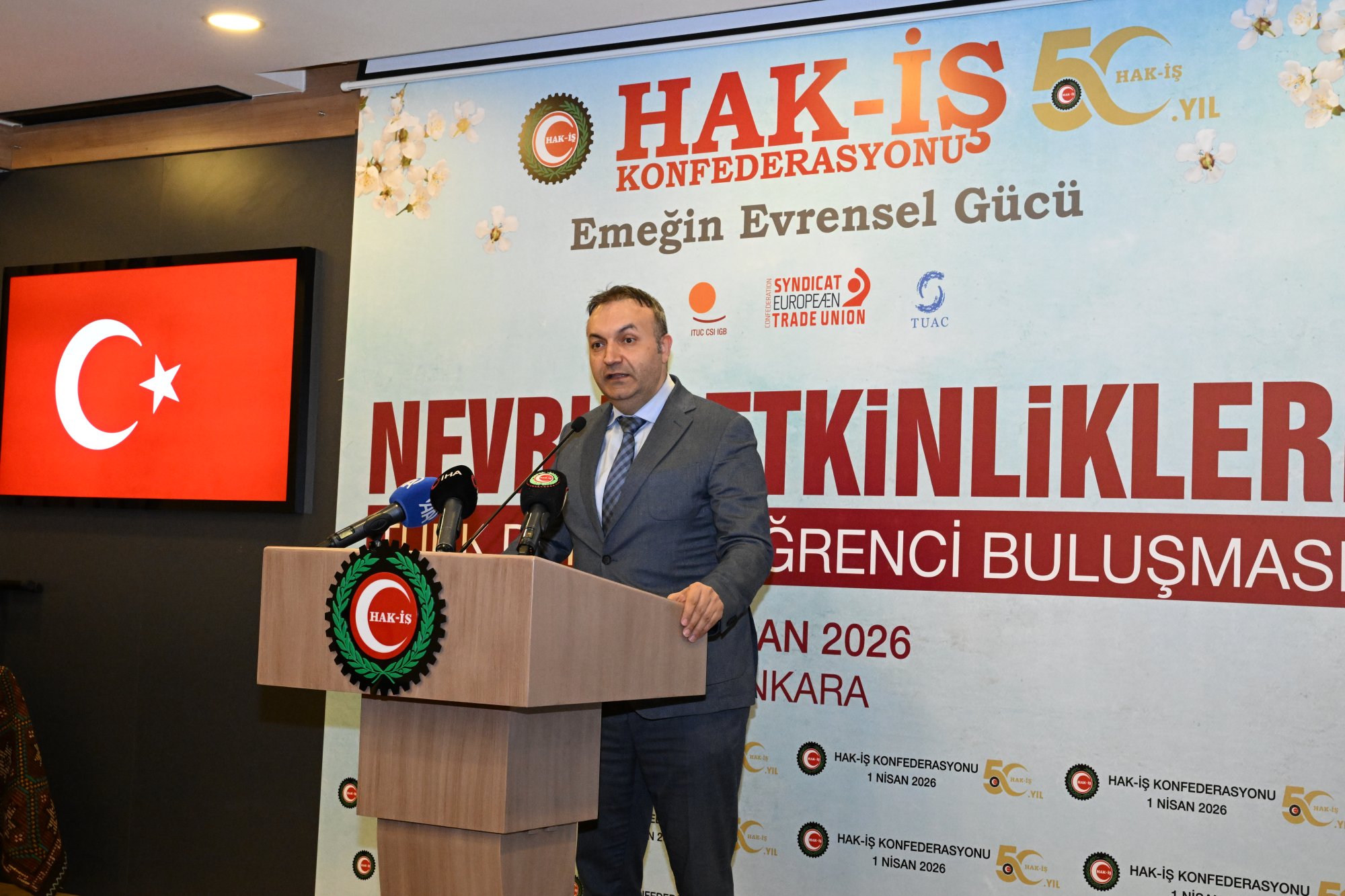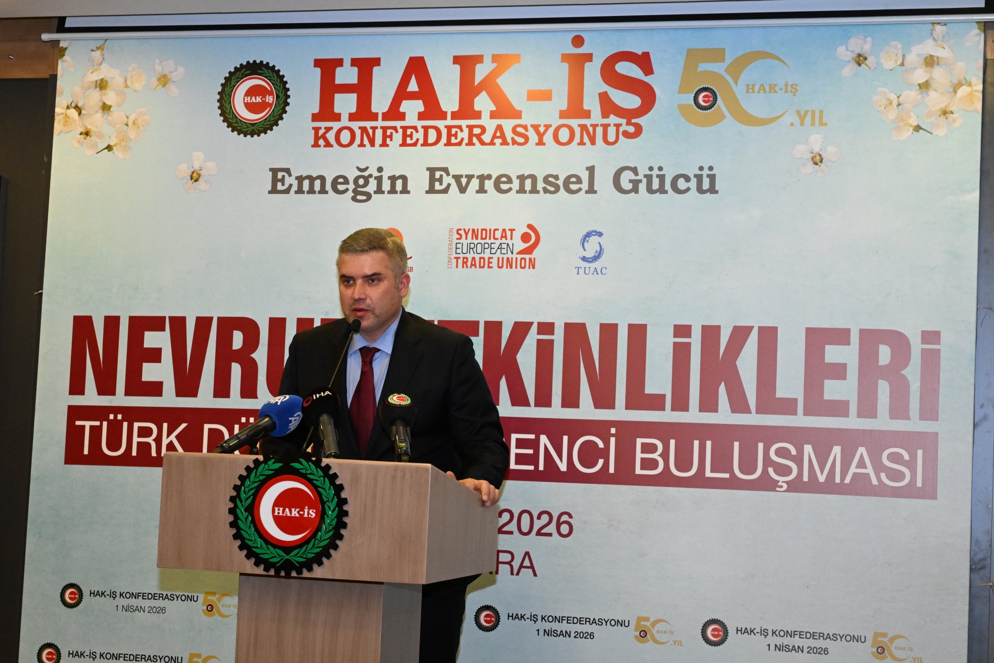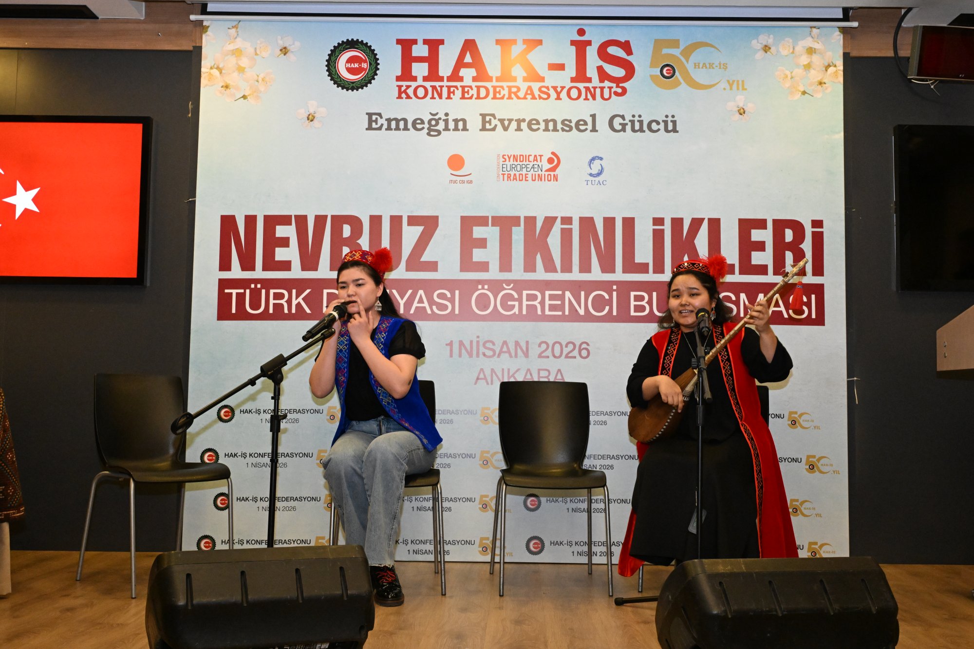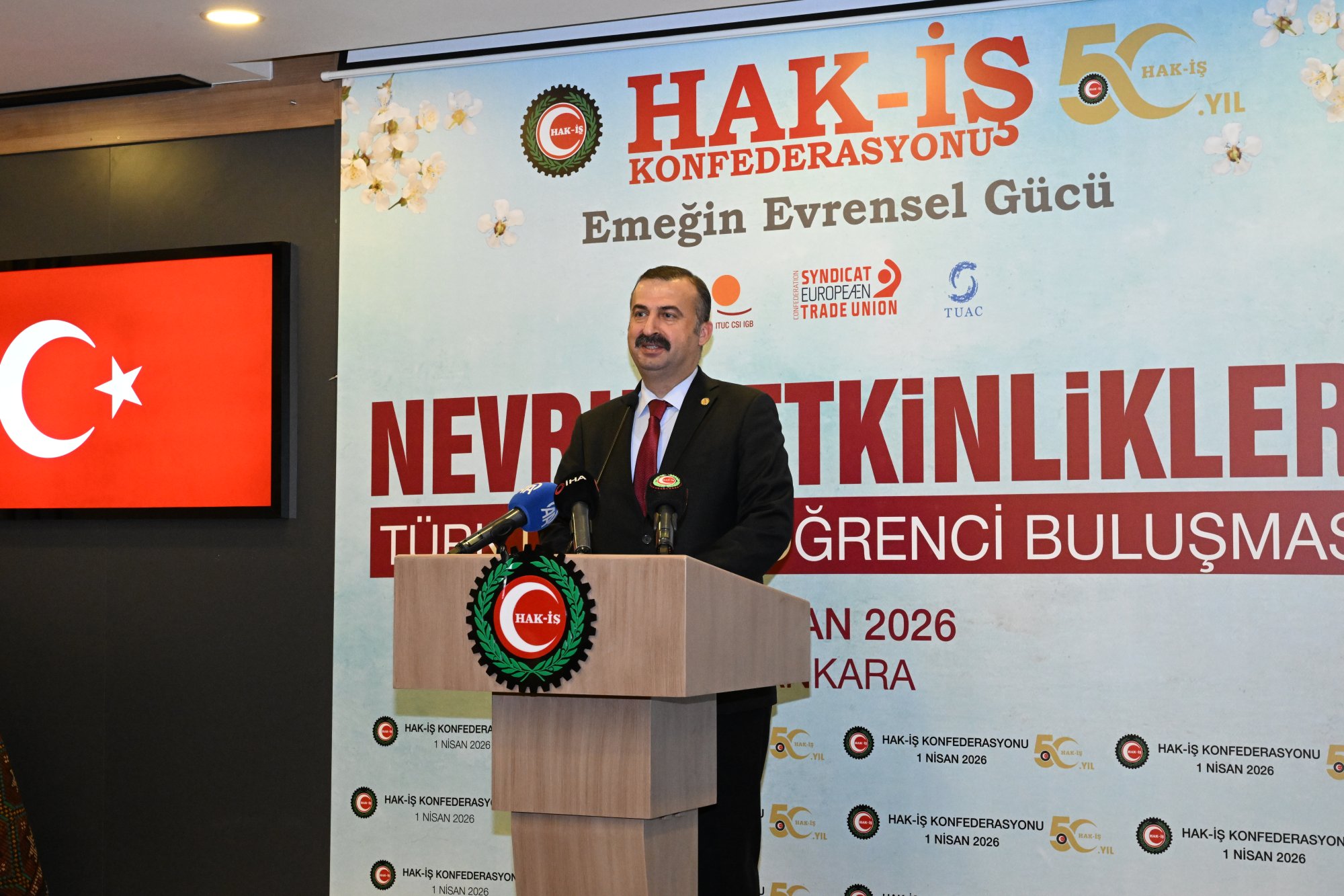 duruşu, İstiklal Marşının okunması ile başladı. HAK-İŞ 50. Yıl Filmi ve Nevruz