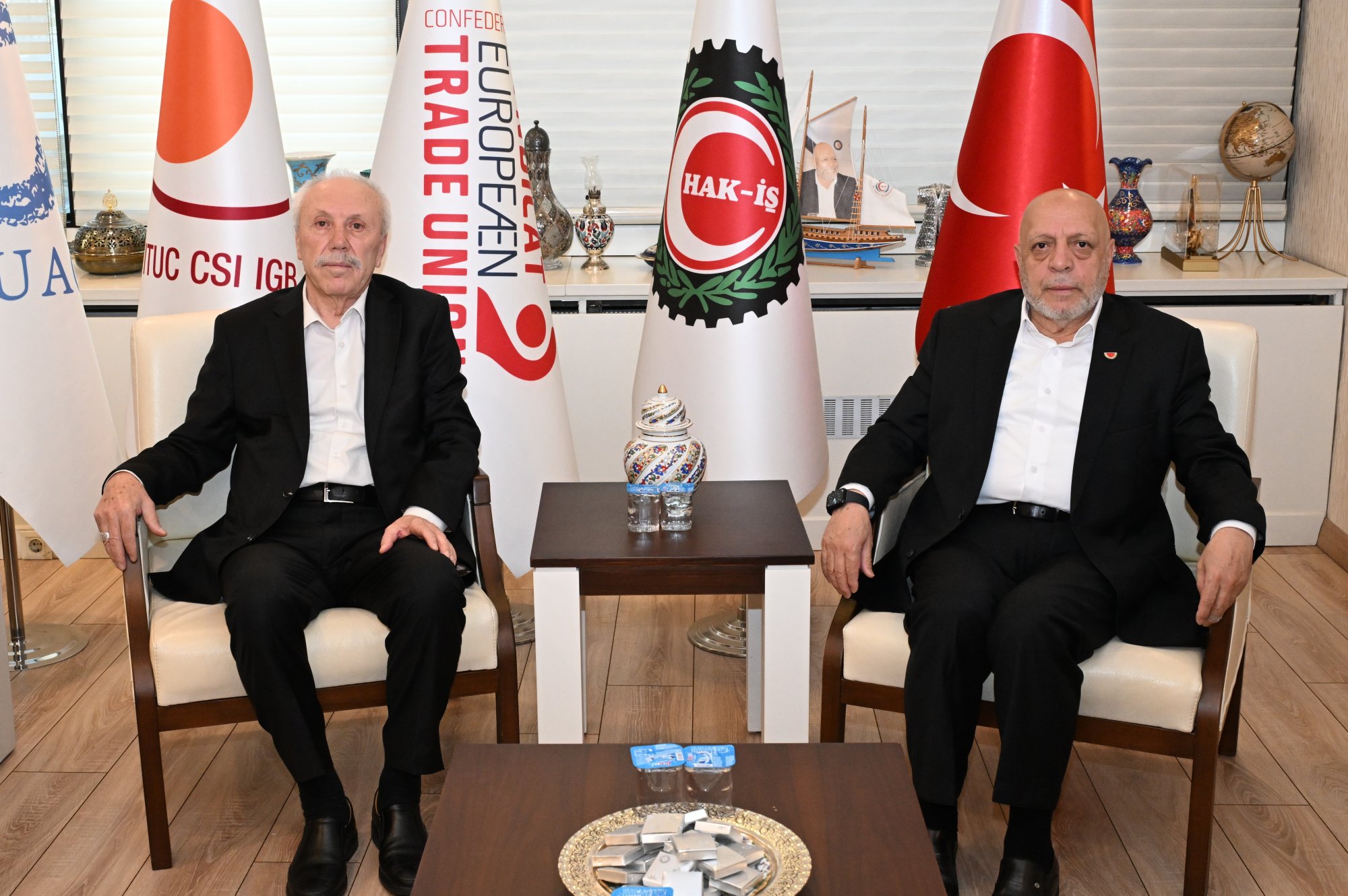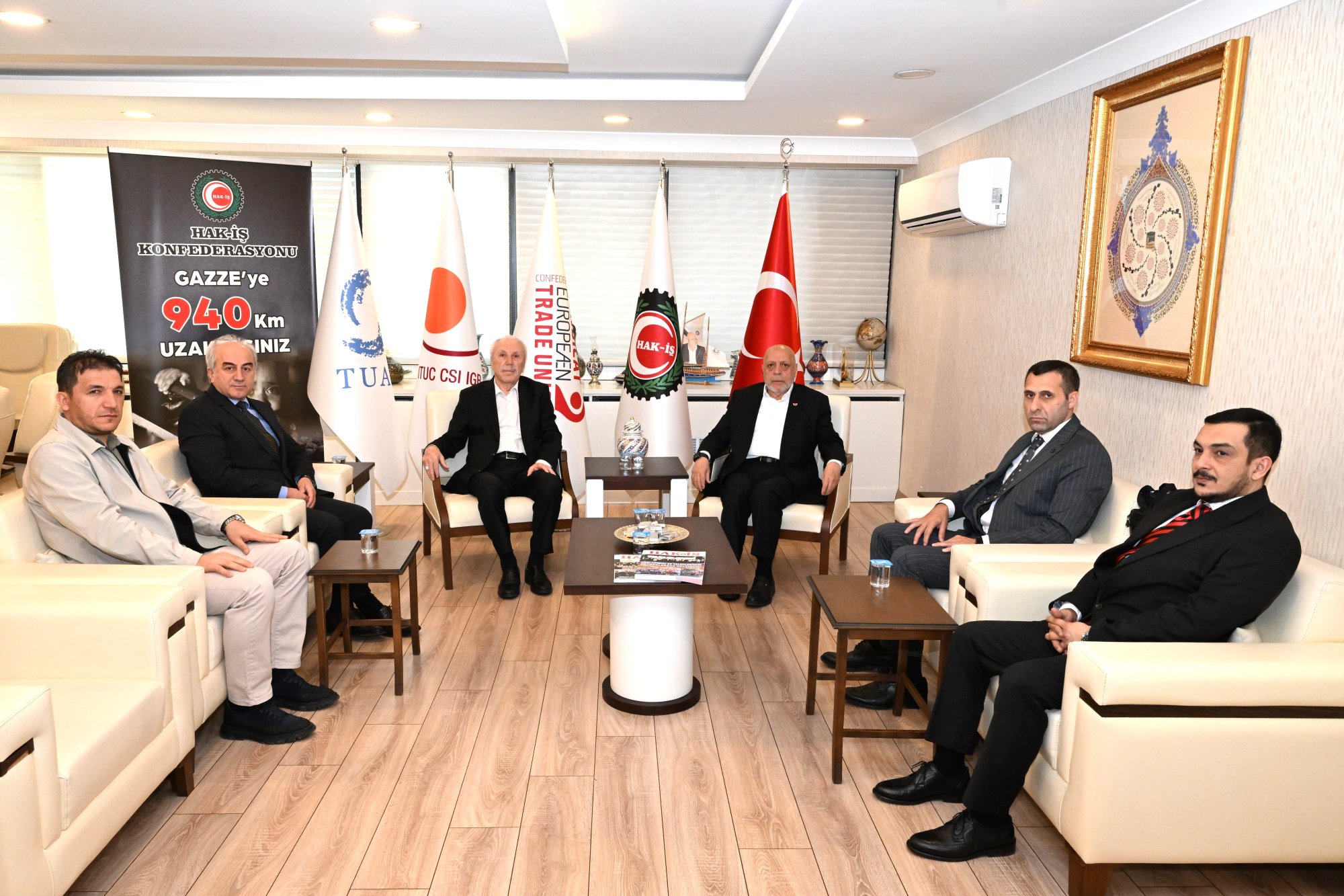 Genel Başkanımız Mahmut Arslan, 7 Nisan 2026 tarihinde Konfederasyonumuza üye Öz Toprak-İş Sendikamızın Genel Başkanı ve HAK-İŞ Denetleme Kurulu Üyesi Metin Özben ve Yönetim Kurulu Üyeleriyle bir araya geldi.